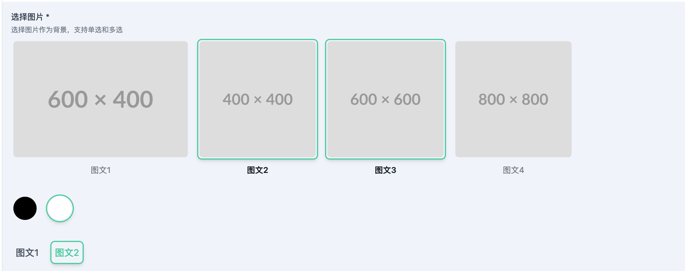 切换组件,用于对一组图片、颜色或文字等选择切换,支持单选与多选。它的功能与 select 组件类似,但相较于 select 组件,toggle 组件可以更直观的展示选项。