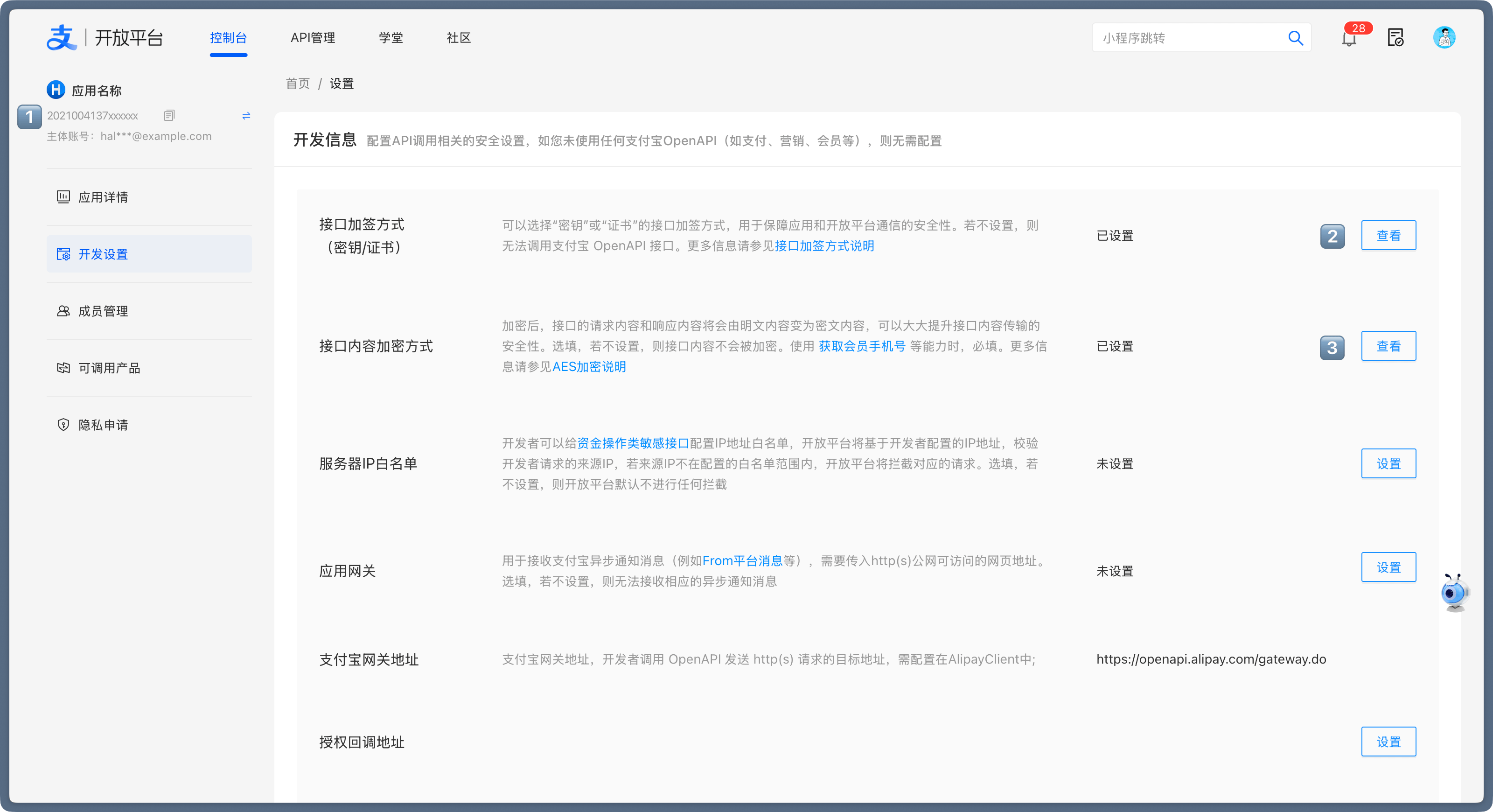 https://openapi.alipay.com - 支付宝账号 ID:进入支付宝开放平台的账户中心,复制 账号 ID