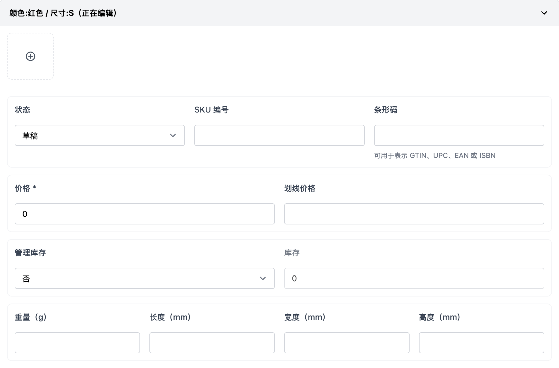 - 库存:规格的库存数量,当库存为0时,用户无法购买